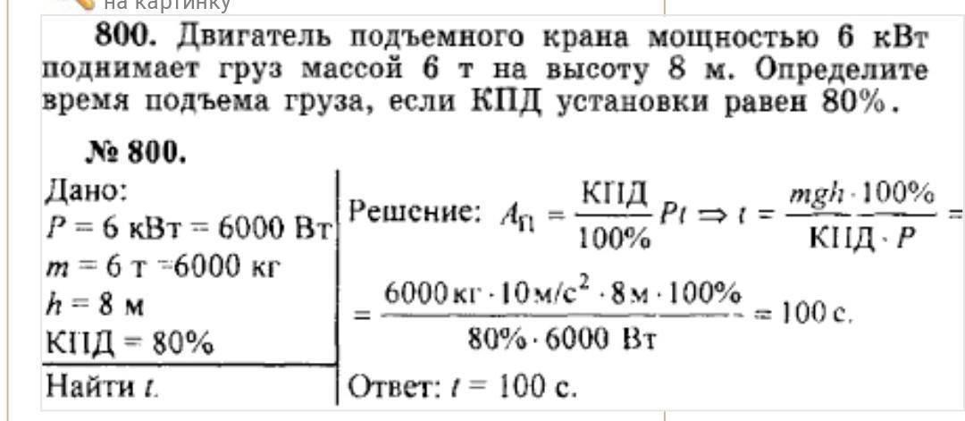 1. Двигатель подъёмного крана мощностью 6 кВТ поднимает груз массой 6 т на высоту 8м. Определите время подъёма груза, если КПД установки 80% ?
