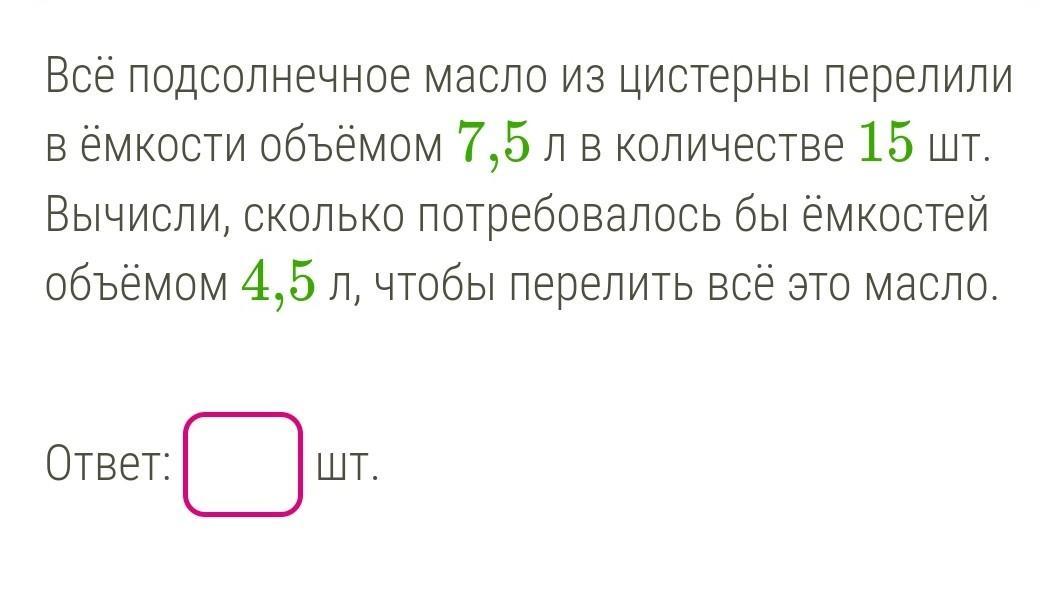 112.5 : 4.5 = 25 - Понадобится ёмкостей
