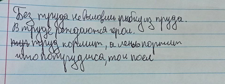 Без труда не выловишь рыбку из пруда. Была бы охота — будет ладиться работа. Кто любит труд, того люди чтут. Птицу узнают в полёте, а человека в работе. Не откладывай на завтра то, что можно сделать сегодня. Любишь кататься, люби и саночки возить