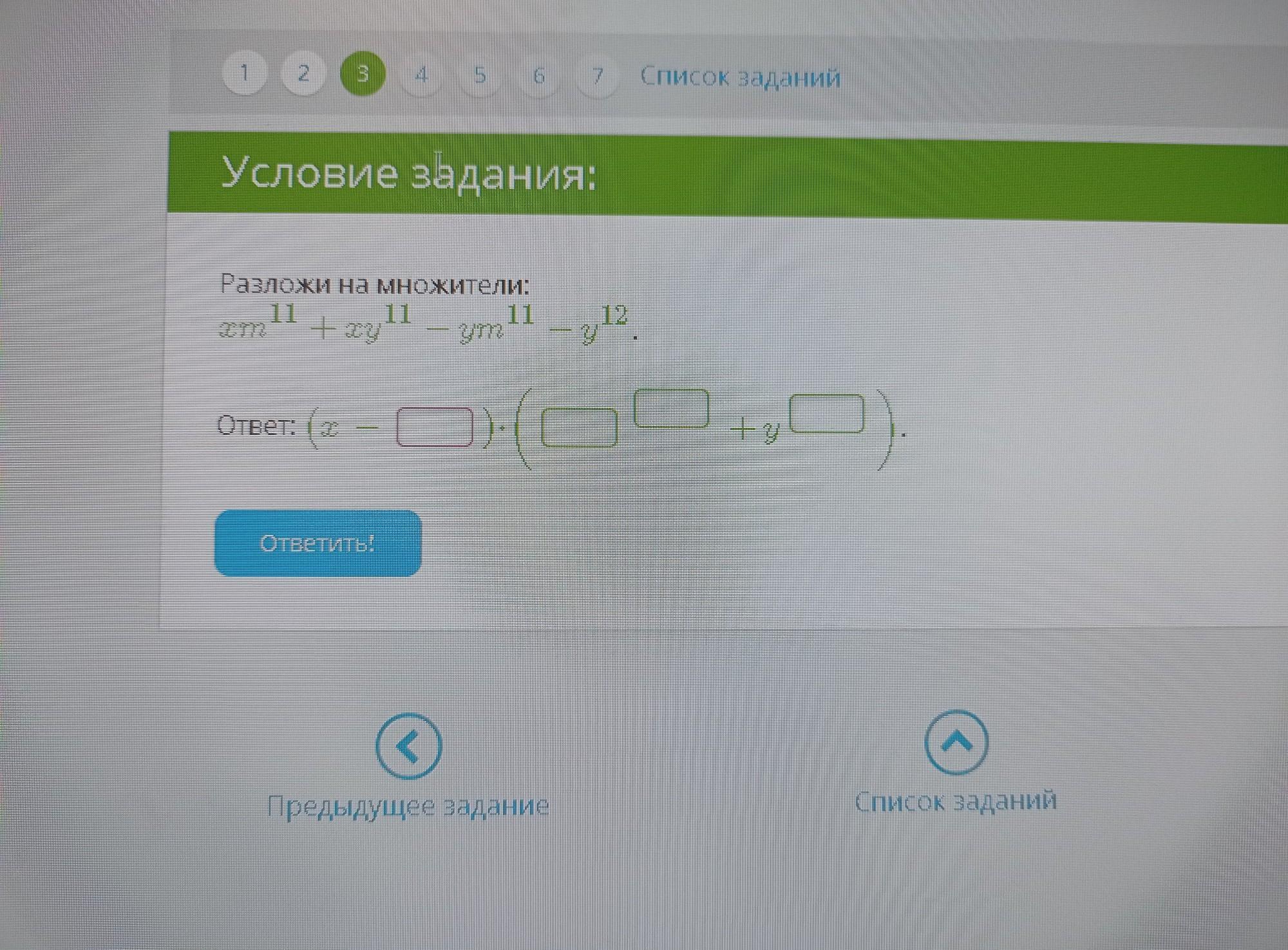 (x-y) (m¹¹+y¹¹), а решение для понимания в изображении