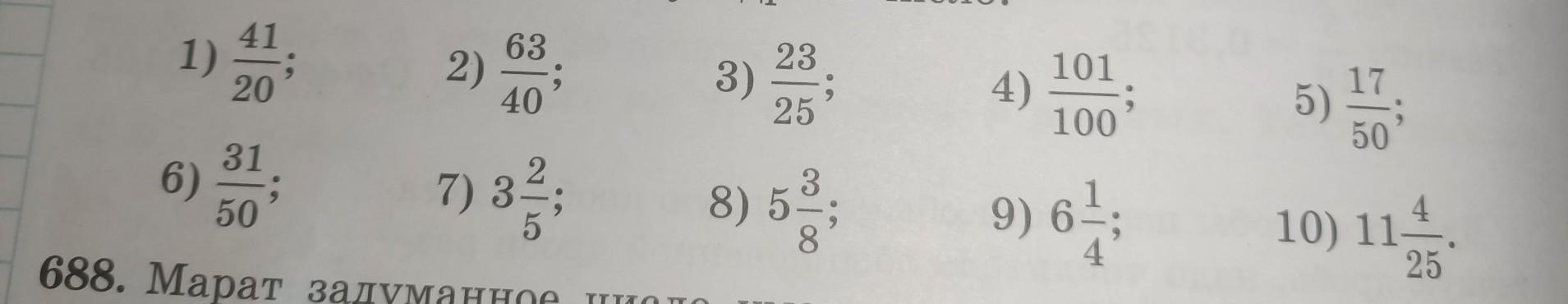 6. 1/4 = 25/4 = 25 : 4 = 6,25