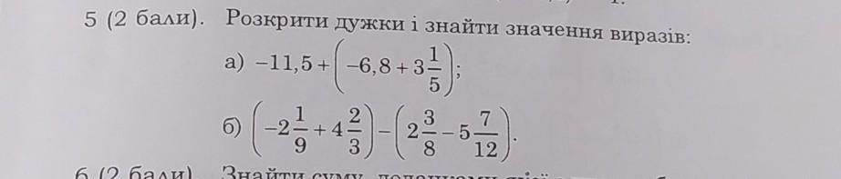 б) (- 2 1/9 + 4 2/3) - ( 2 3/8 - 5 7/12) = 5 55/72