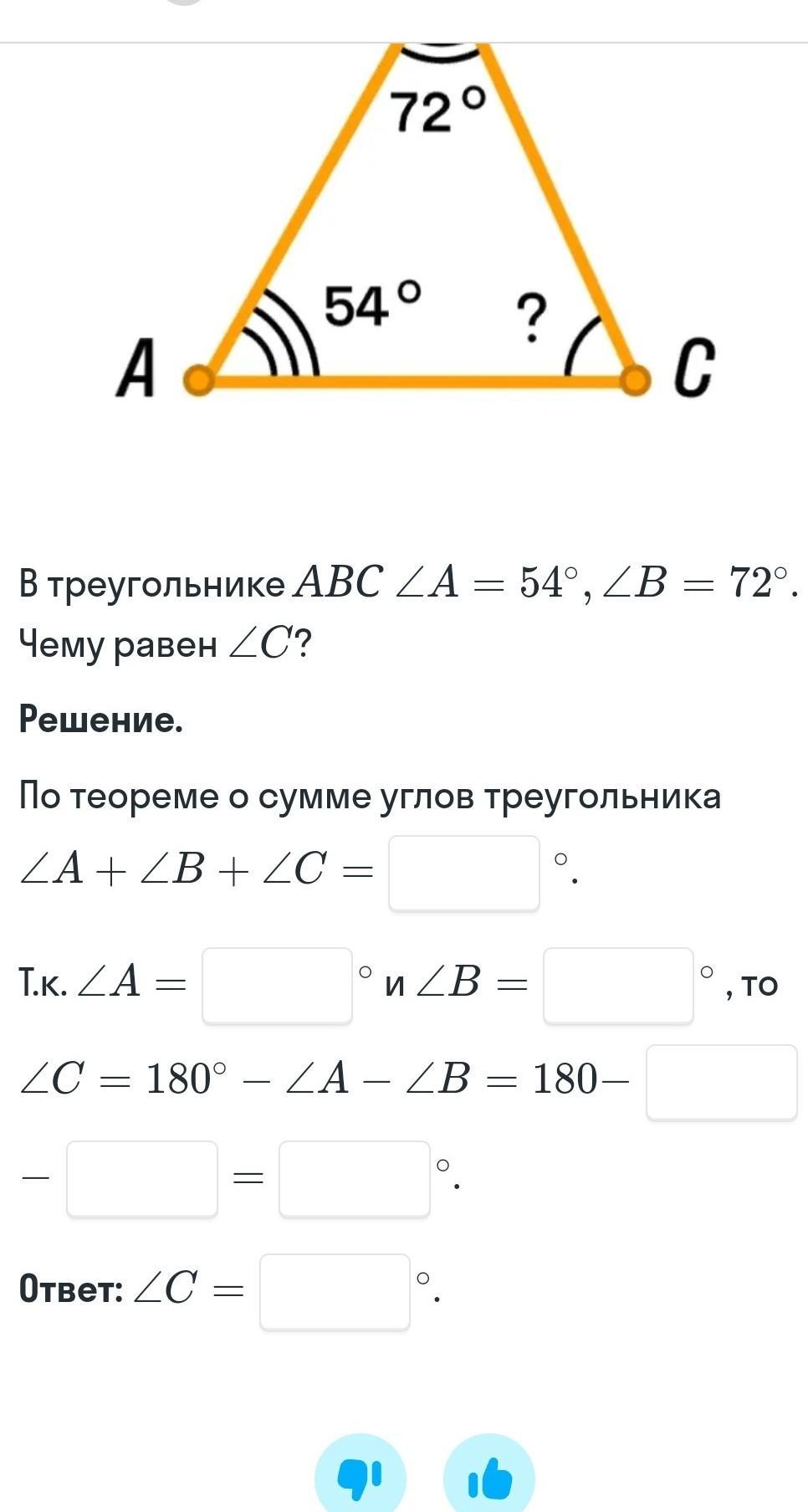 тк угол A=54 и угол B=72 то