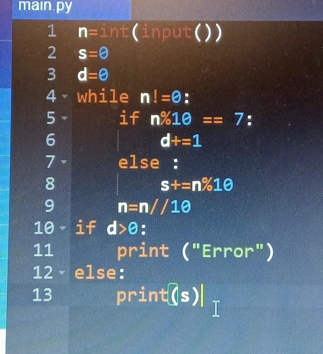 грамму, в которой, если число «7»