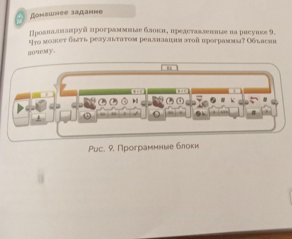 Проанализируй программные блоки, представленные на рисунке 9. Что может быть результатом реализации этой программы? Объясни Lovery. Рис. 9. Программные блоки