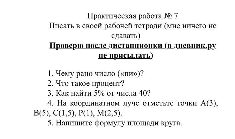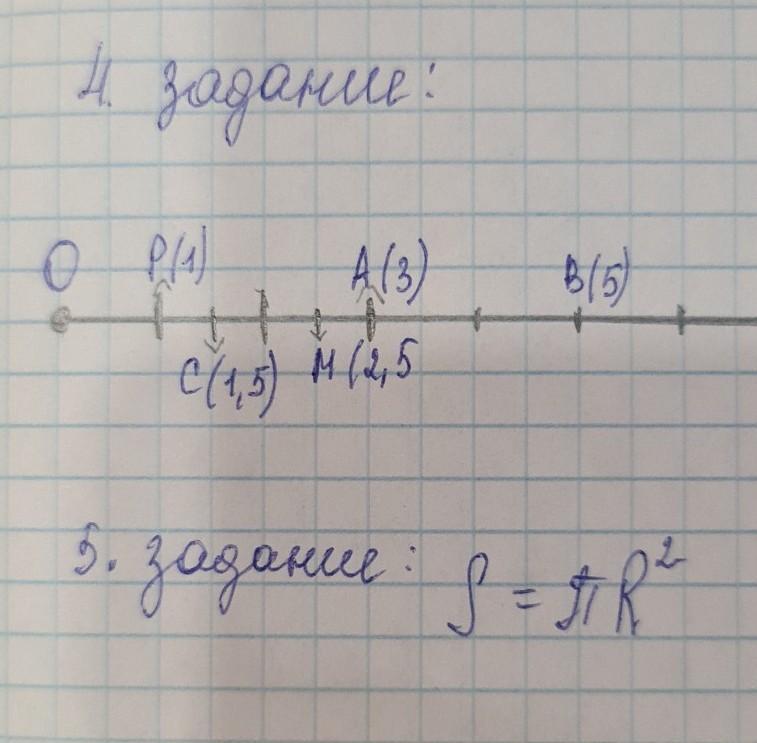 5) S = π × r2, где r — это радиус, π — это константа, которая выражает отношение длины окружности к диаметру, она приблизительно равна 3,14.