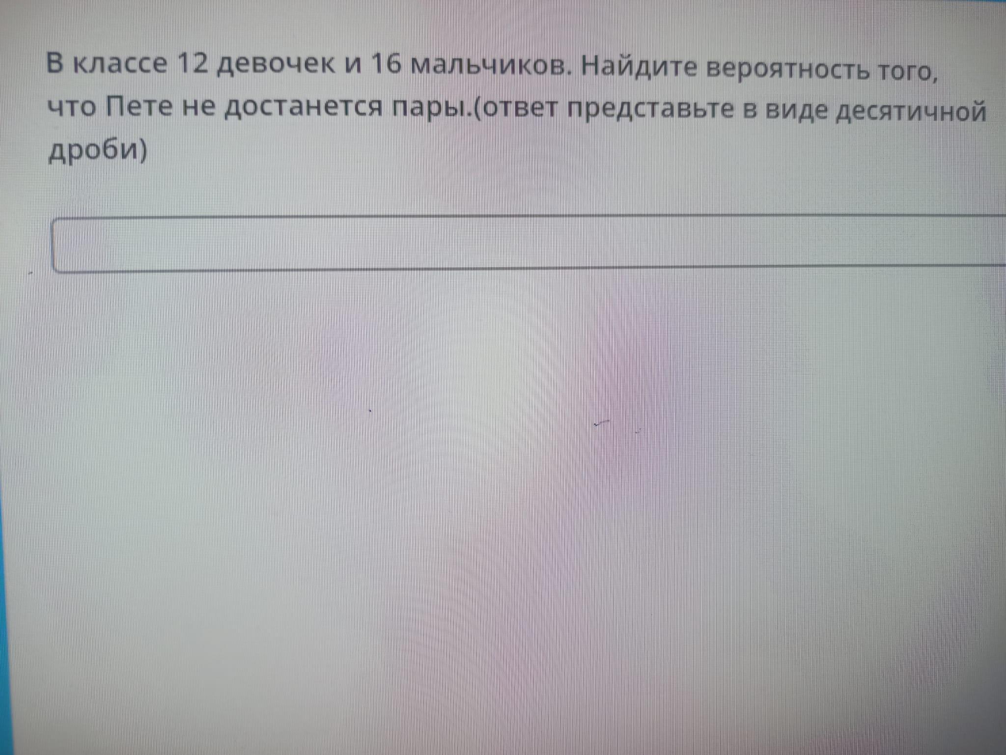 2. Представим, что пары уже распределены. 4 мальчика остались без пары. Чтобы Петя остался без пары, ему нужно оказаться в этих 4-х.