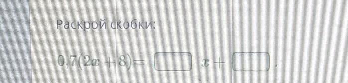 0,7(2х + 8) = 1,4х + 5,6