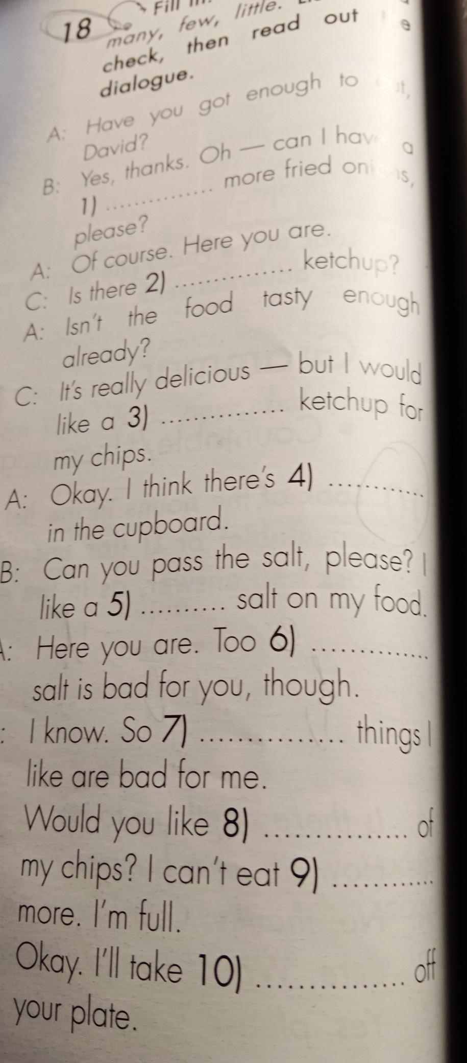 1. some 2. any 3. little 4. few 5. some 6. much 7. many 8. few 9. little 10. some