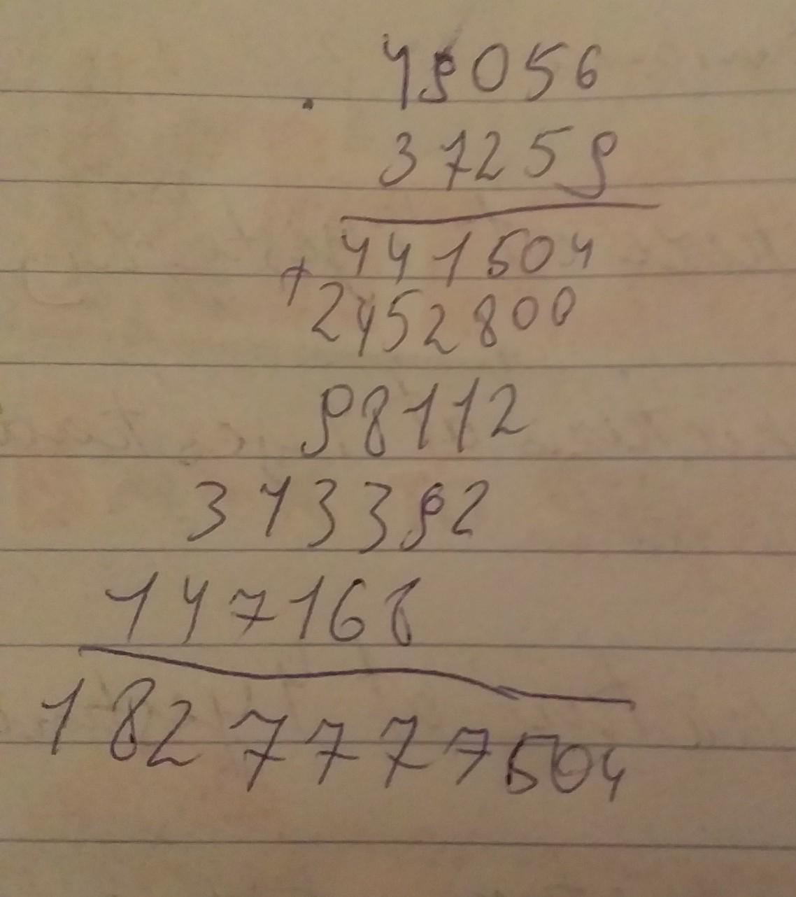 Решение данного примера в столбик представлено на картинке.