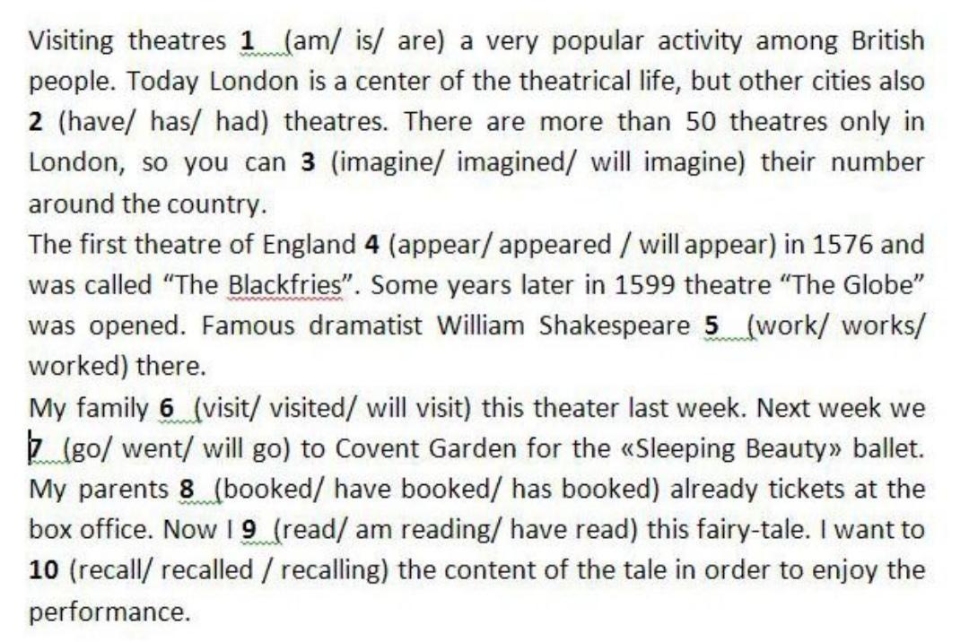 Visiting theatres is a very popular activity among British people. Today London is a center of the theatrical life, but other cities also have theatres. There are more than 50 theatres only in London, so you can imagine their number around the country.