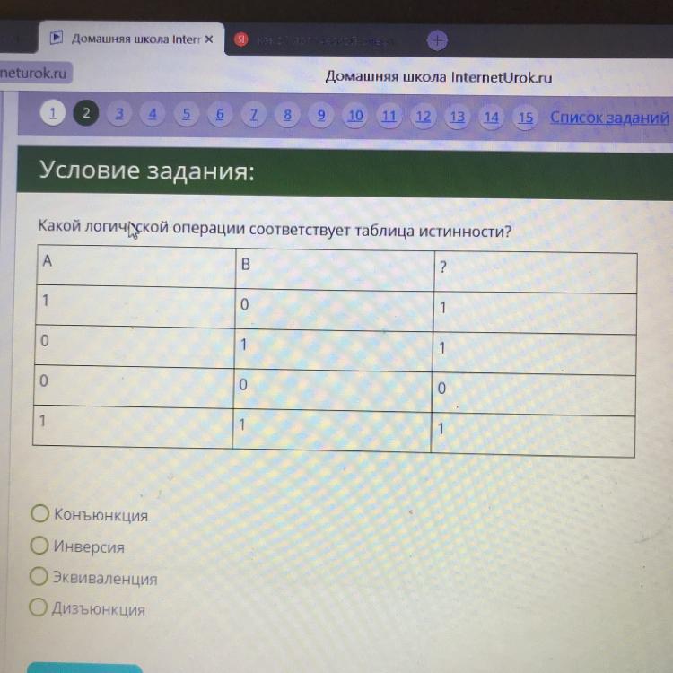 Какой логической операции соответствует таблица истинности?( таблица в прикрепленном файле)