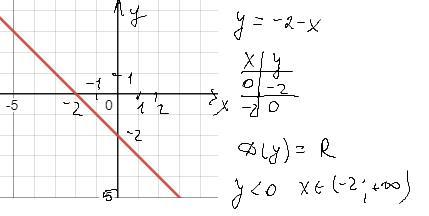 Знайдіть D(y) - область визначення функції у=-2-х та значення аргументу, при яких функція набуває від'ємних значень ребята помогите пожалуйста мне СРОЧНО нужно?!!!