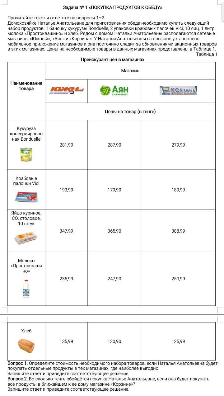 1) Сотри если сложим всего самые дешевые продукты, то будет: 1349.76 тенге.рублей