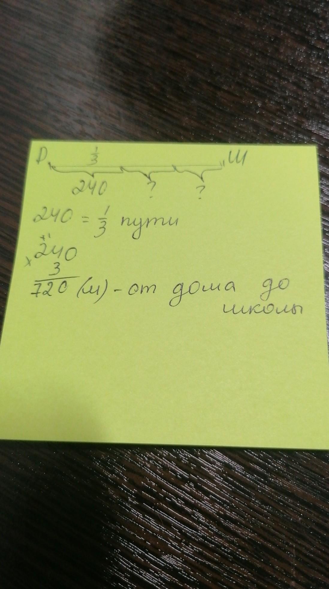 Гмина прошла 240 метров до школы это составляет одну третью часть пути от дома до школы сколько метров от дома до школы