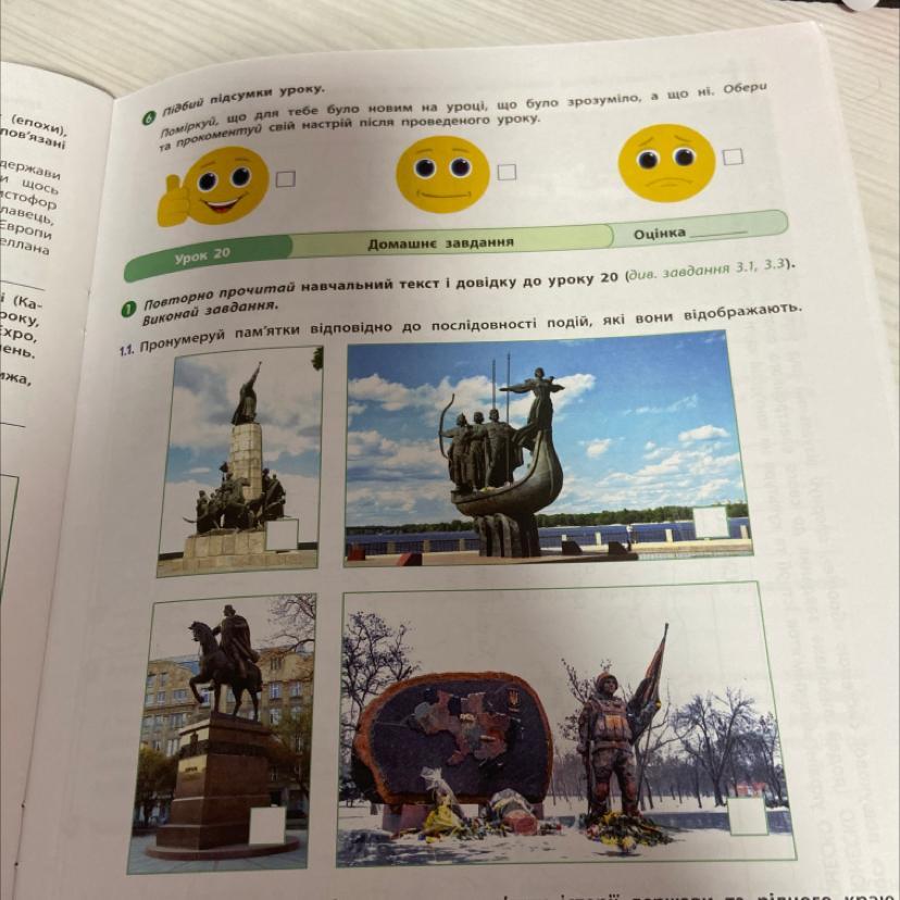 1. Пронумерун паметки відповідно до послідовності подій, які вони відображають.