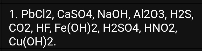 оксиды, кислоты, основания, соли. Назвать каждое вещество.