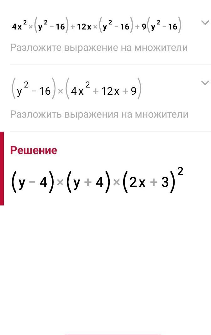 4x²· (y²-16)+12x( y²-16) + 9(y²-16) = ( y² - 16 ) · ( 4x² +12x +9) =