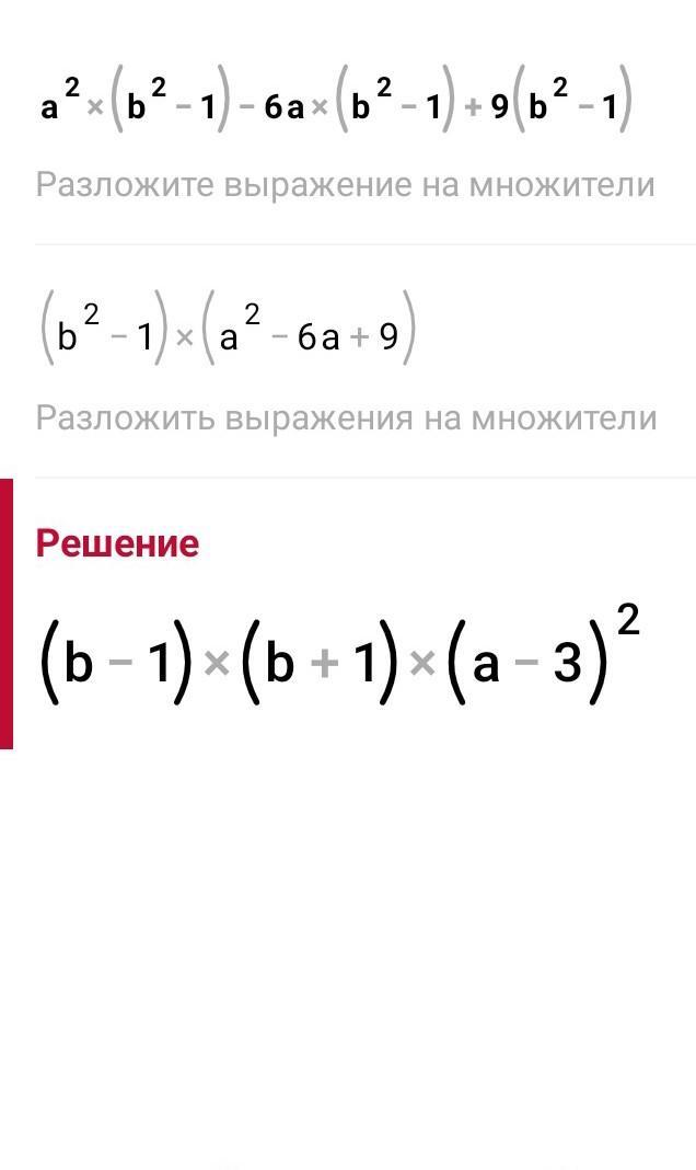 а²· (b² - 1 ) - 6a ·(b- 1) + 9 · (b² -1 ) =( b² - 1 ) · ( a² - 6a - 9) =
