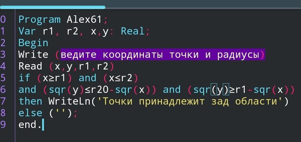 Write ('ведите координаты точки и радиусы');