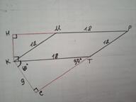 Объяснение: Дано: КМРТ - параллелограмм, МР=КТ=18 см, КМ=РТ=12 см. КН и КС - высоты. ∠СКН=150°. Найти S(КМРТ).