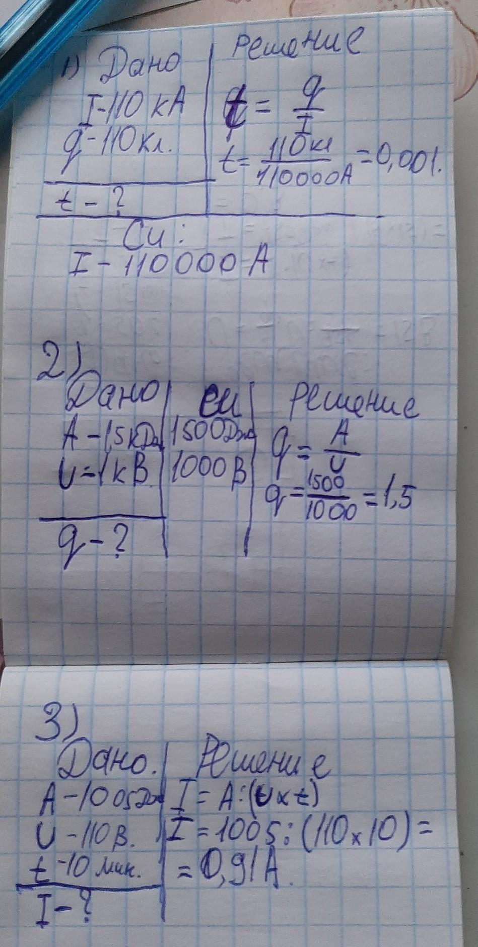 1. Сила тока в электрической цепи равна 110 кА, заряд равен 110 Кл. Найти время переноса заряда в цепи.
