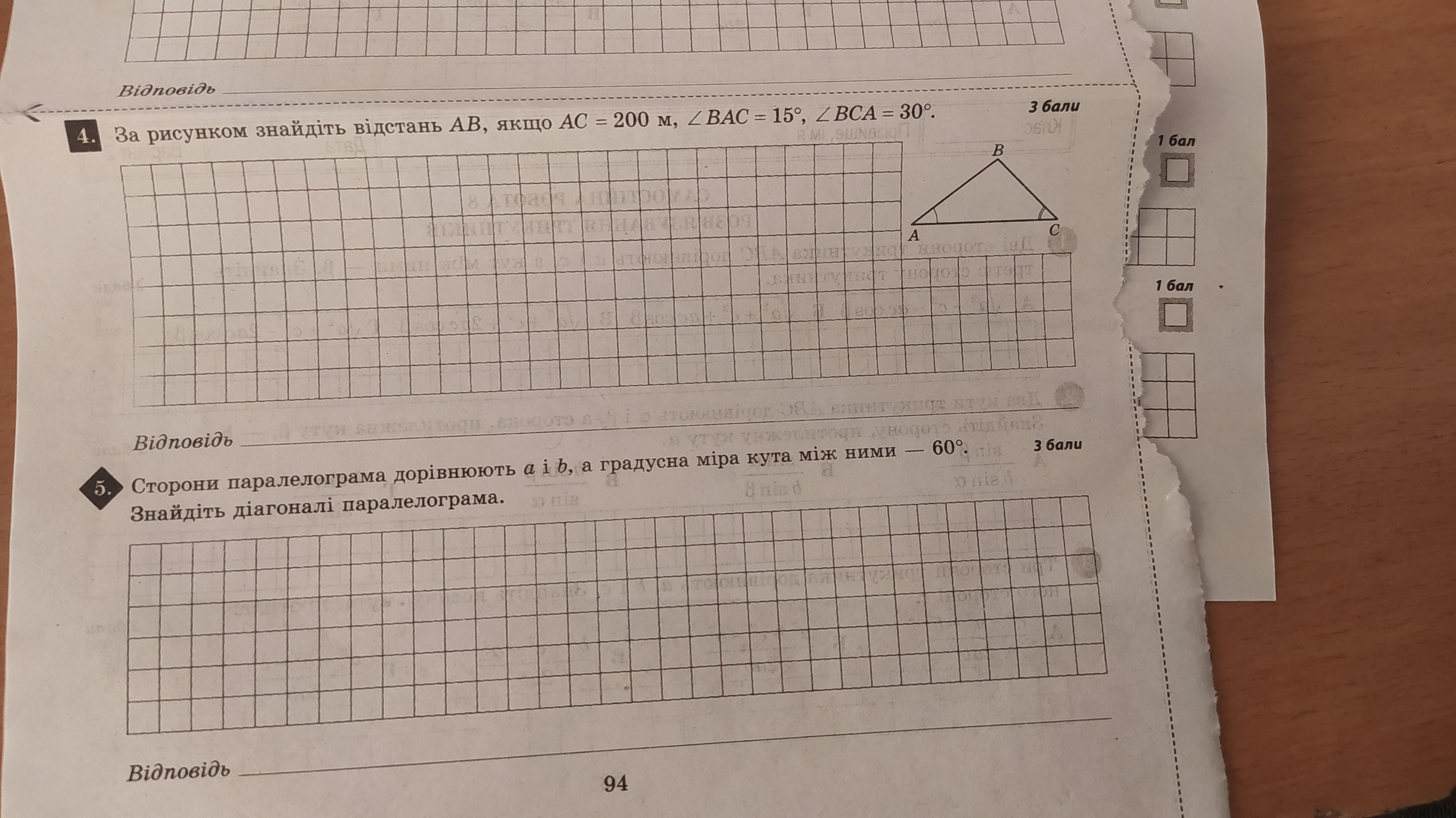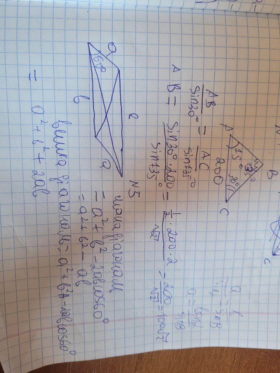 5) d1=√(a²+b²-2ab*cos60°)=√(a²+b²-ab)