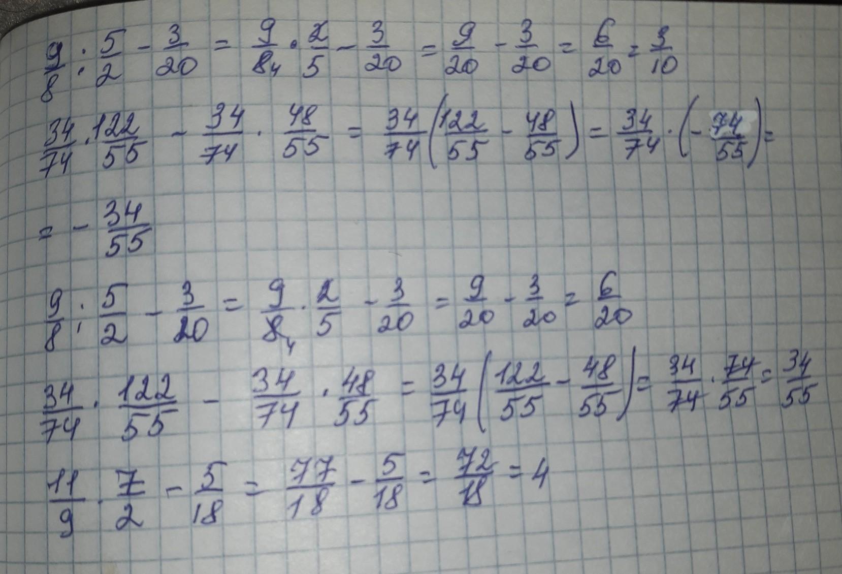 2.Вычислите 34/74*122/55-34/74*48/55 ответ в виде несократимой дроби