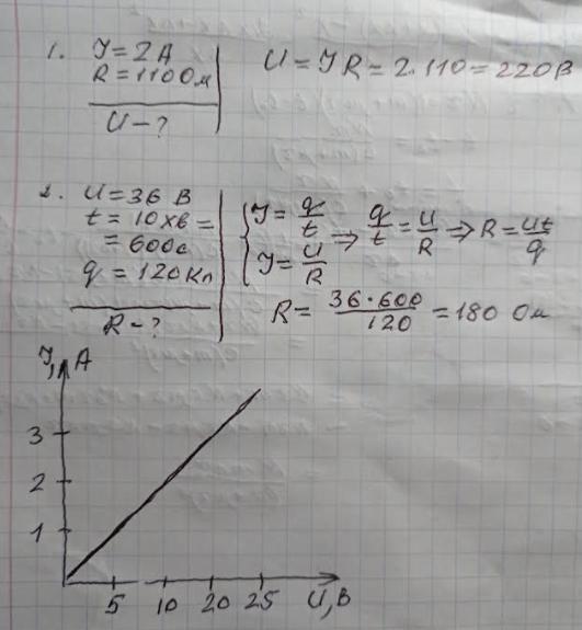 1 Визначити напругу при силі електричного струму 2А, якщо опір провідника 110 Ом .