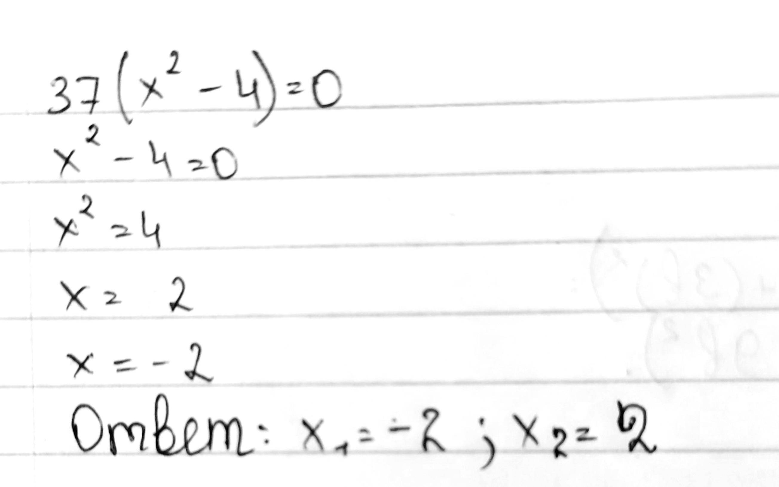 Т.к 37 не равен 0,то единственное решение, когда x^2-4 = 0.Тогда