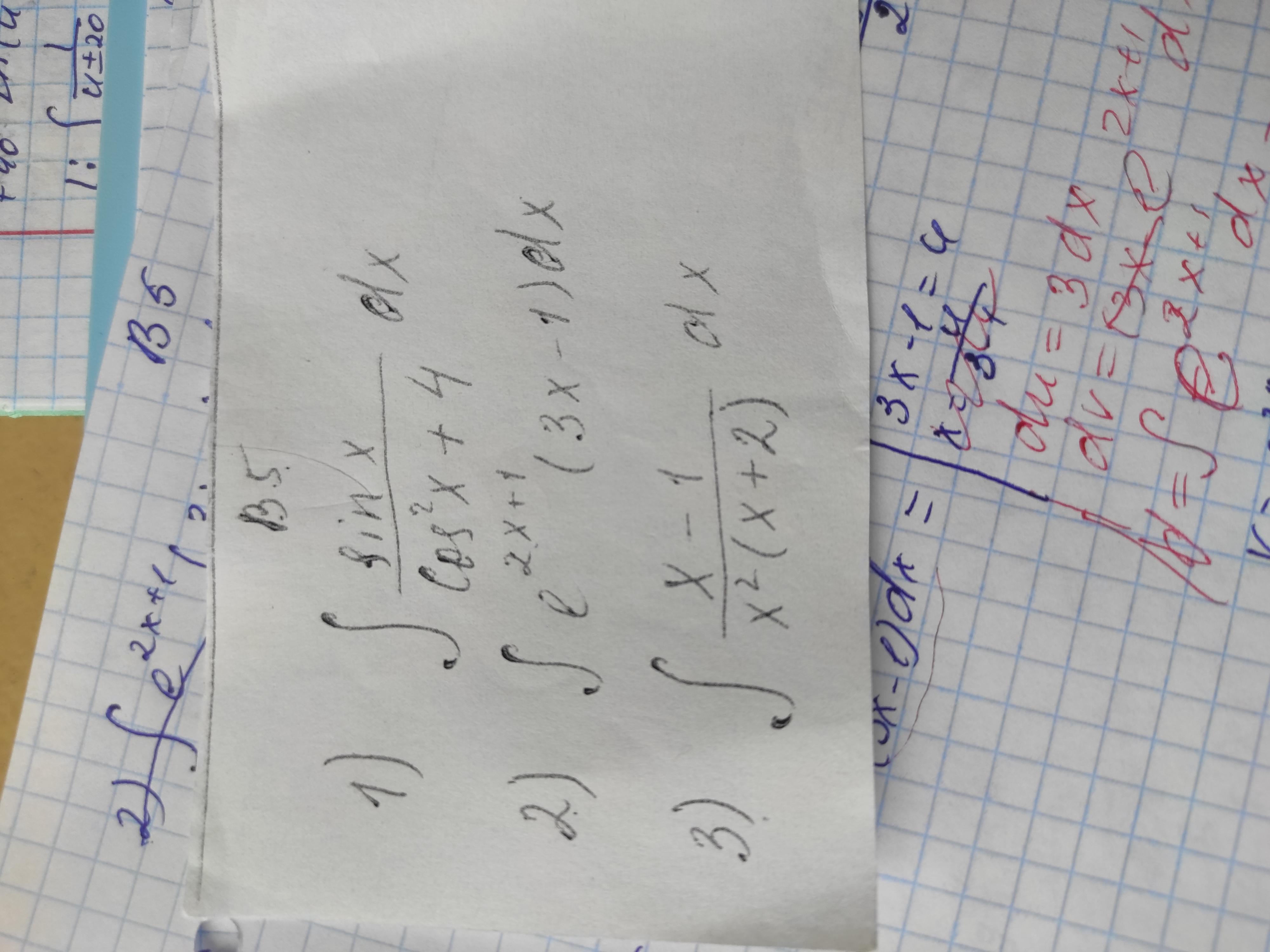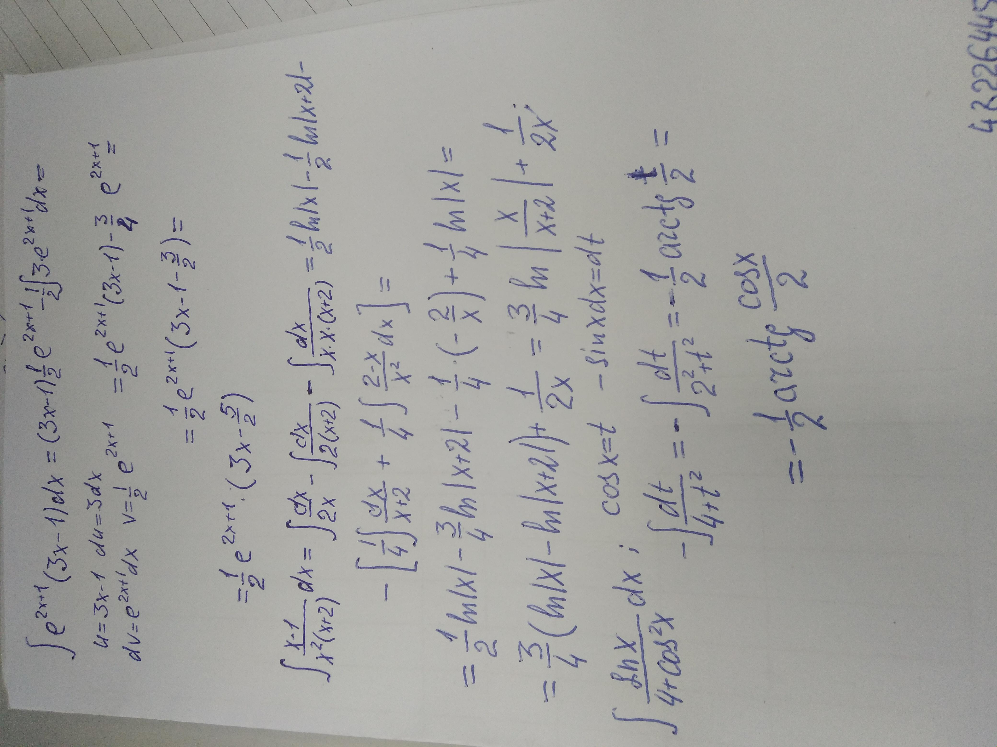 1)∫sinxdx/(cos²x+4) =|пусть cosx=t, тогда -Sinxdx=dt |= -∫dt/(t²+4) =