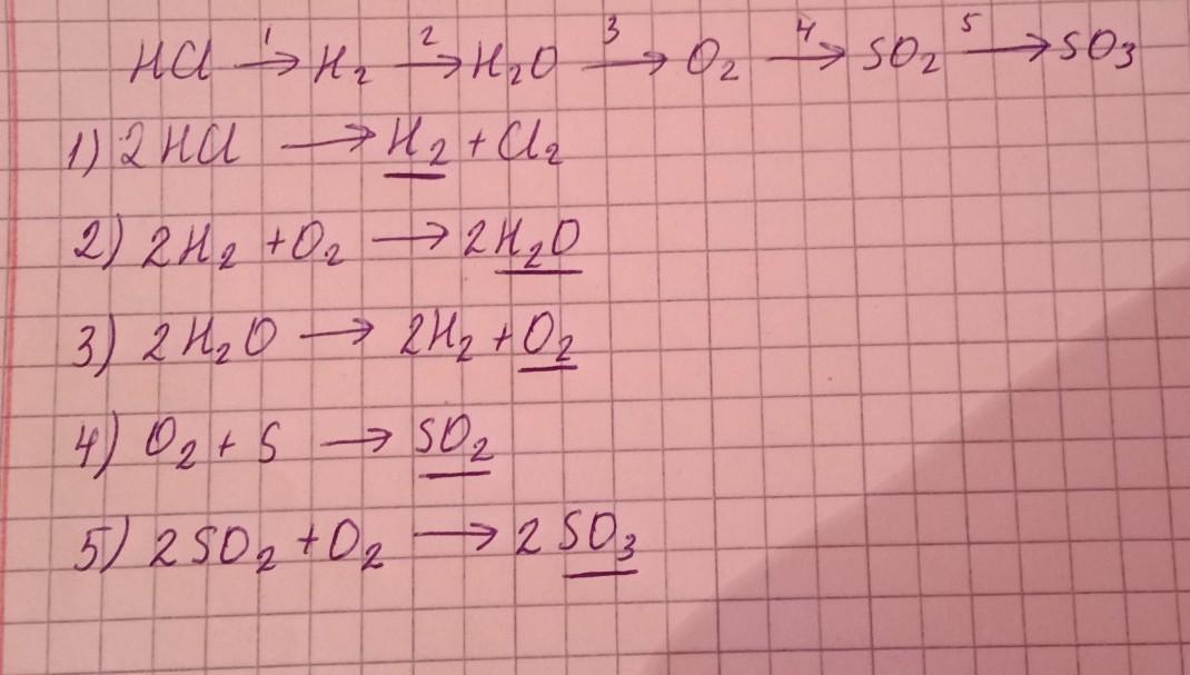 HCl→ H2 → H2O → O2 → SO2 → SO3