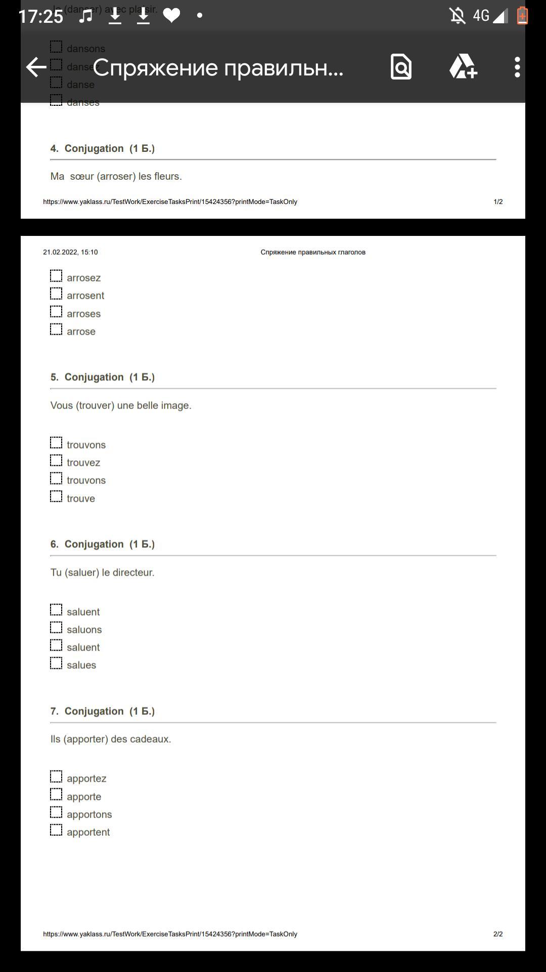 1 cherchons 2 travailles 3 dance 4 acrose 5 trouvez 6 salues 7 apportent.