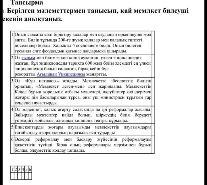 1-тапсырма берілген мәліметермен танысып қаи мемлекет билеуші екенін анықтаңыз
