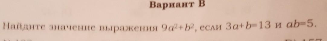 2+b 2 +6ab−6ab== (3a+b)^{2}-6ab=169-30=139=(3a+b)