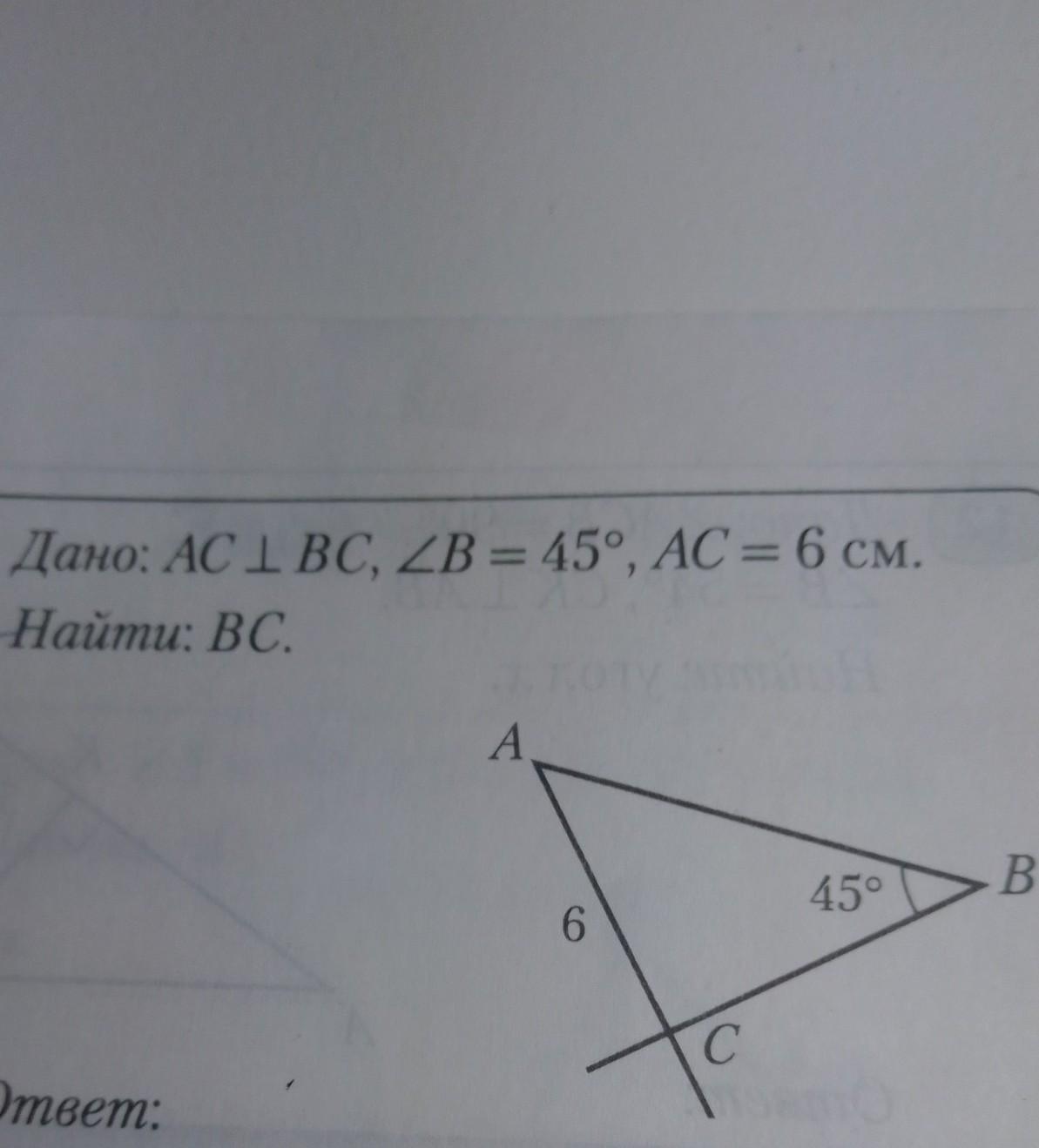 Найдём катет BC по катету AC и противолежащему к нему острому углу 45° :