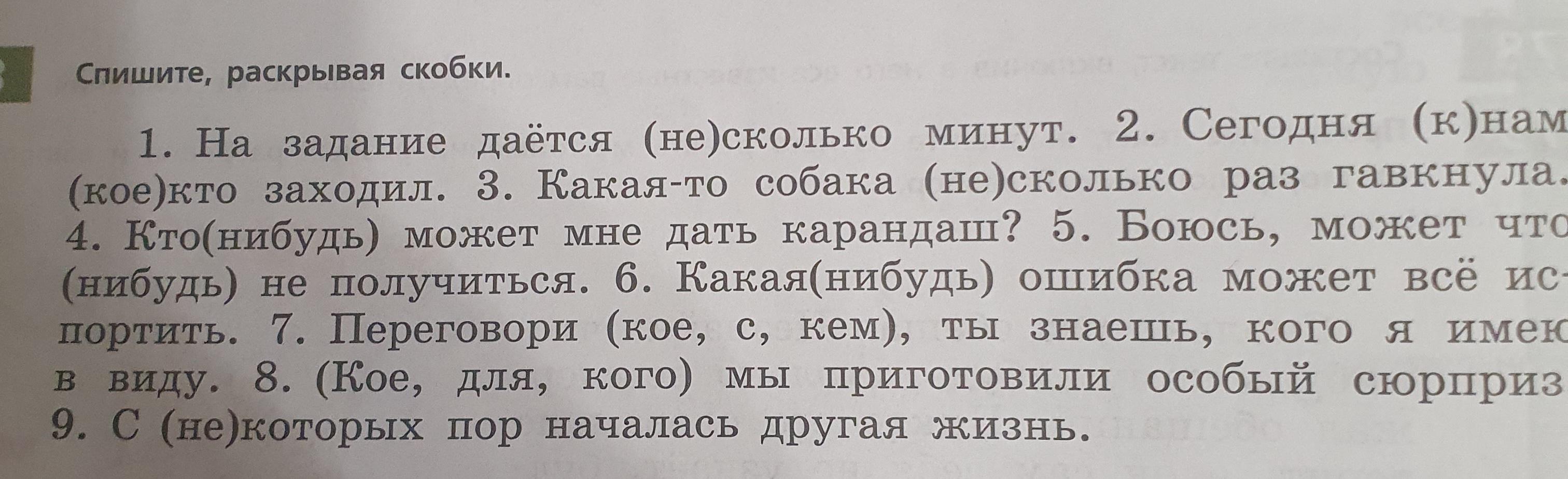 Ответ: не сколько , к нам ,кое-кто, не сколько, кто-нибудь, нибудь,