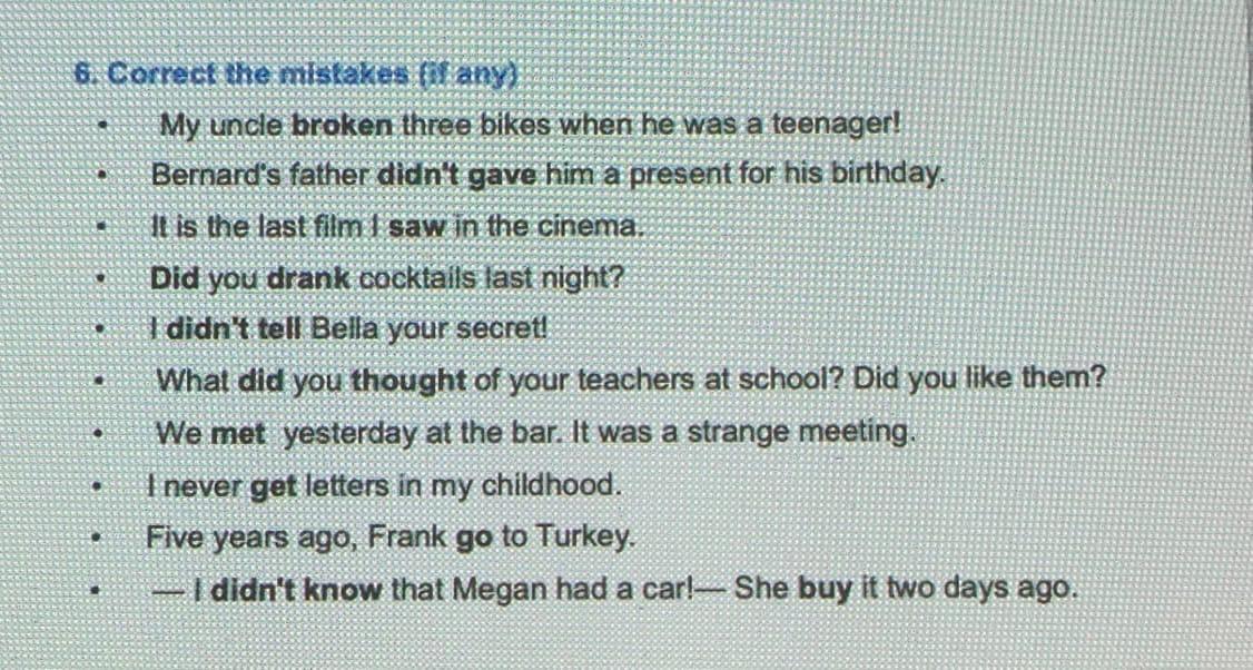 нужно исправить ошибки в предложениях, ошибки есть не во всех предложениях