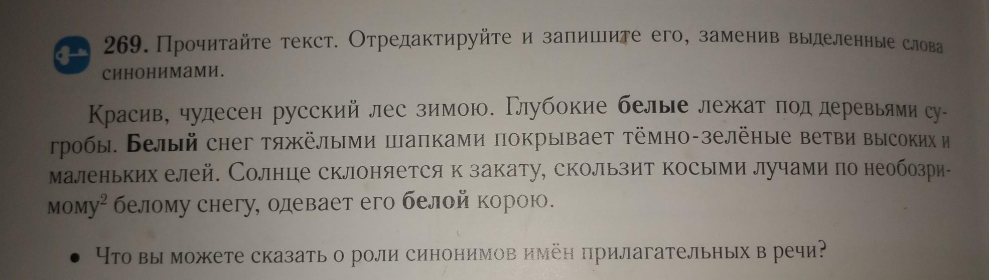 прочитайте текст отредактируйте и запишите его,заменив выделенные слова синнонимами