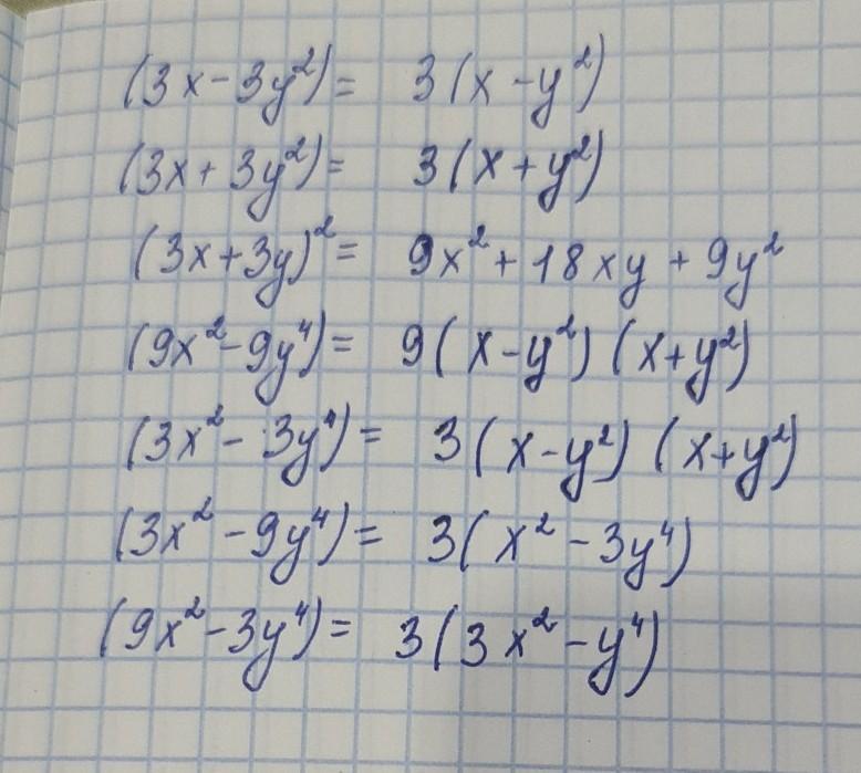 Запишіть вираз у вигляді многочлена(3x-3y^2)(3x+3y^2)