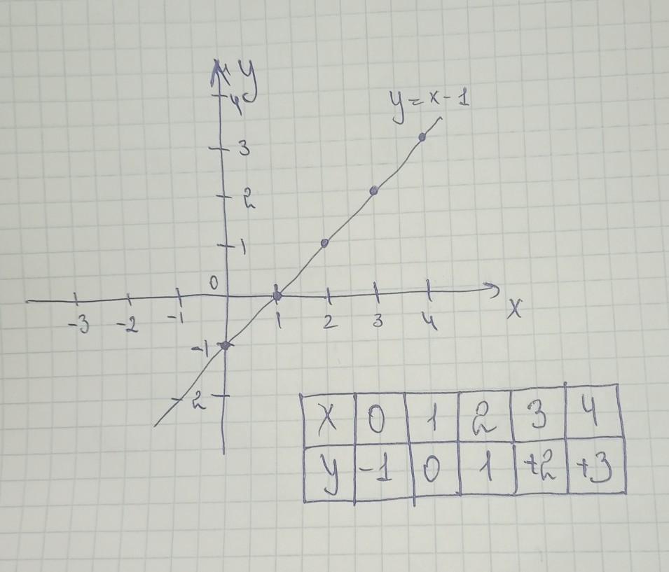 для функції y=x-1 можна брати і 2 точки , але я взяла більше щоб було гарніше