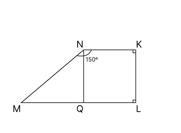 ∠QNK=90°, а значит ∠MNQ=150°-90°=60°.