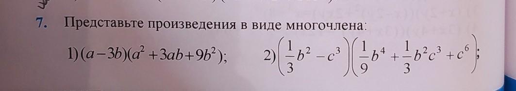 2)(a-b)(a²+ab+b²)=a³-b³→(1/3b²)-(c³)³=1/27b⁶-c⁹