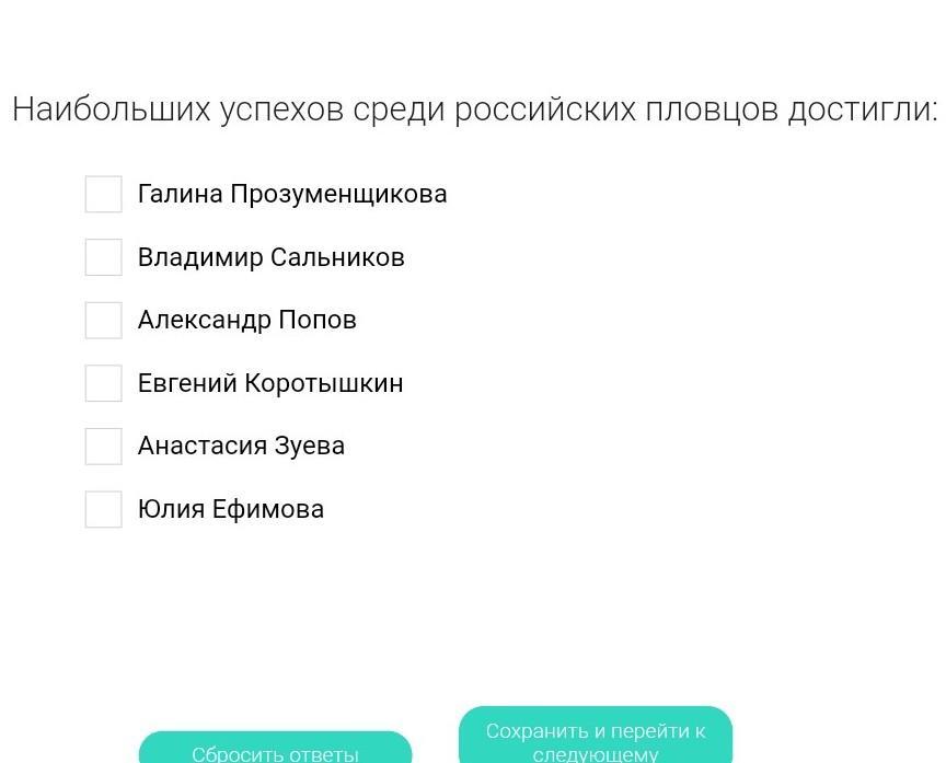наибольших успехов среди российских пловцов добились пж помогите. задание на фотографии. надо выбрать несколько вар. ответов
