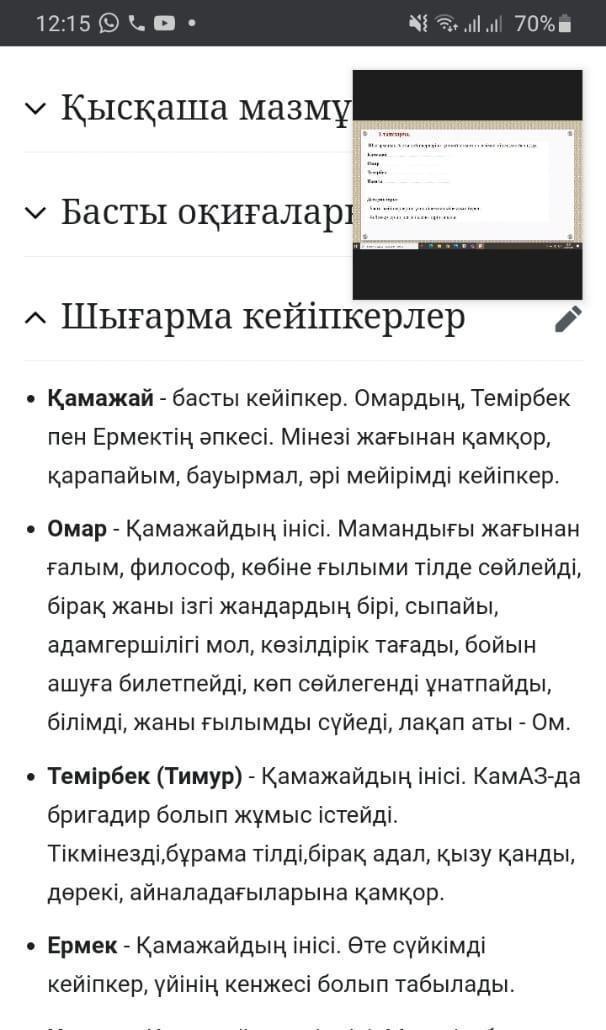 Егер мен Қамажай (Омар, Тимур, Нәзила, Гауһар) Кейіпкерлердің орнында өзің болсаң, қандай шешім қабылдап, қандай қадамдарға барушы , ... едіңдер?