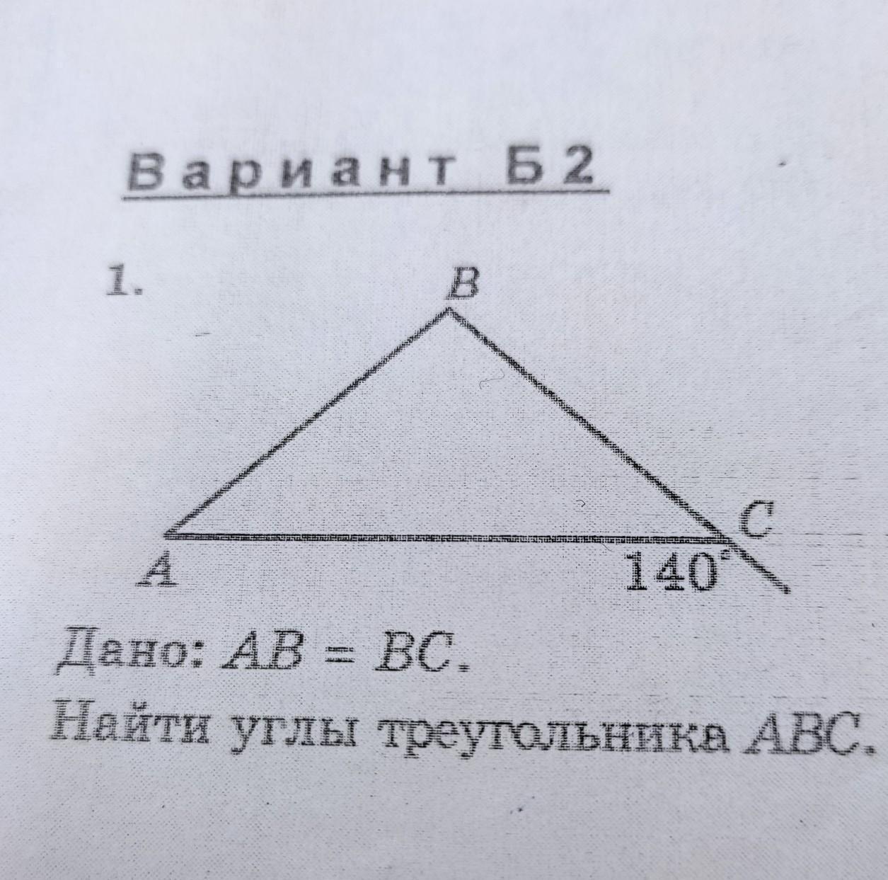 угол АСВ 40, ТАК КАК УГОЛ С 140 140+40=180. ДВЕ СОСЕДНИЕ УГЛИ ДОЛЖНЫ СОСТОВЛЯТЬ 180 ГРАДУСОВ. ИЗ ЭТОГО СЛЕДУЕТ ЕСЛИ УГОЛ АСВ 40 ТО И УГОЛ САВ 40. Углы треугольника в общем счёте должны составить 180 градусов. Из этого 40+40=80, 180-80=100. УГОЛ АВС 100 градусов.
