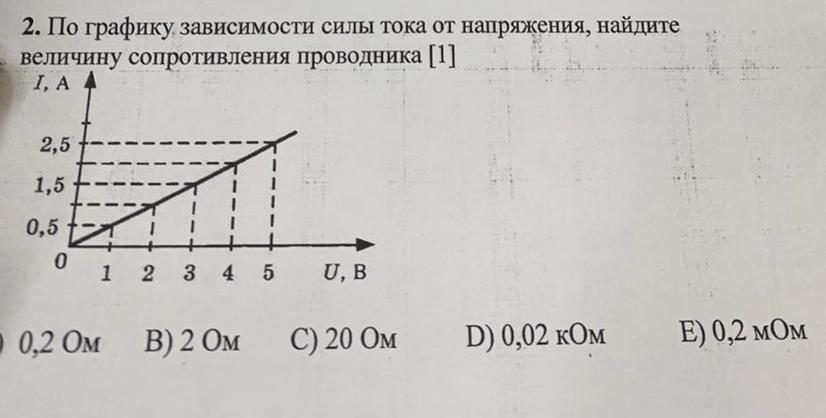 R = U / I = 5 В / 2,5 А = 2 Ом.