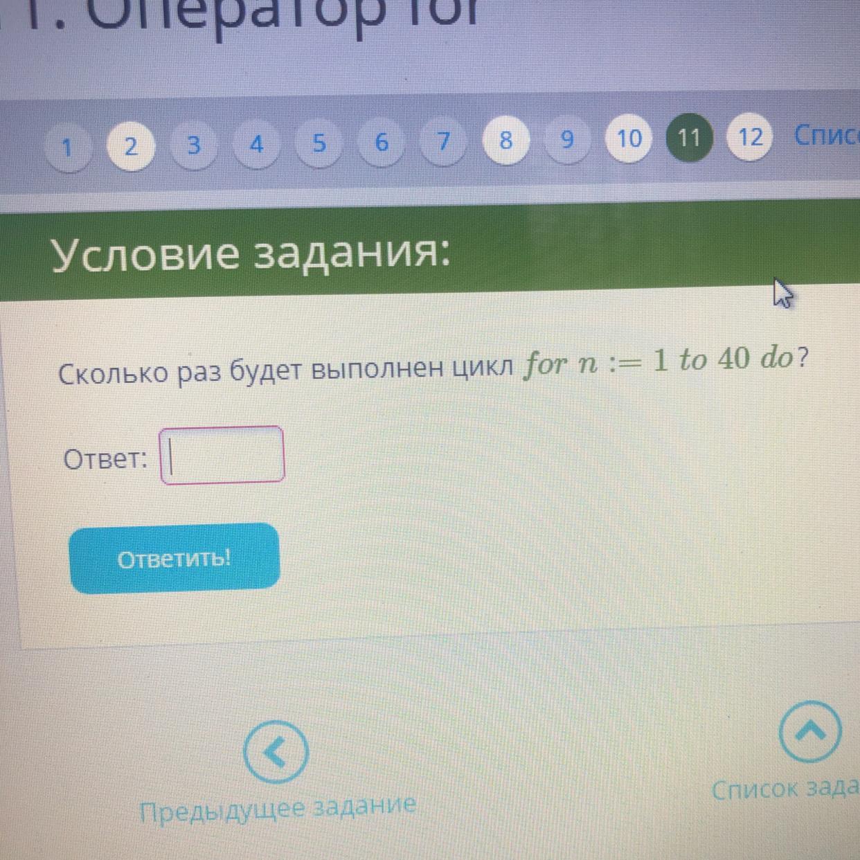 цикл будет выполнен 40 раз