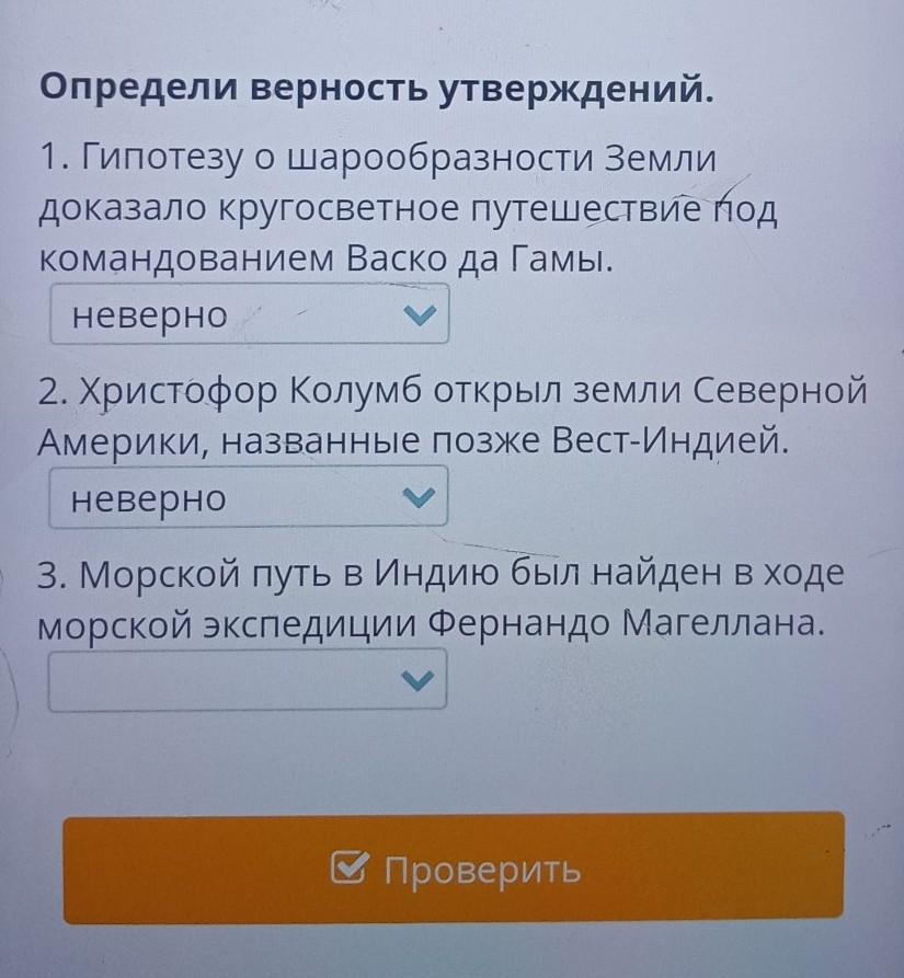 1. Гипотезу ошарообразности Земли доказало кругосветное путешествие под командованием Васко да Гамы. неверно