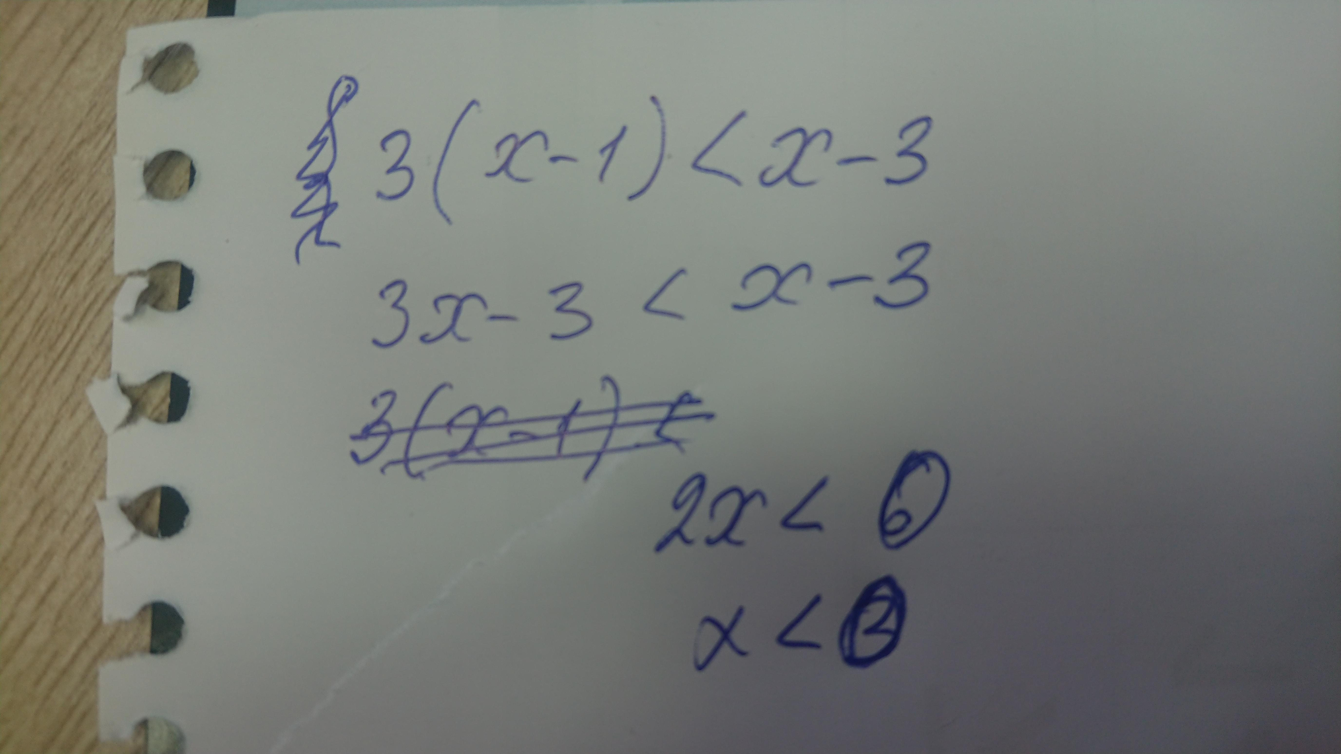 помогите решить пример фигура скобка 3 скобочка открывается икс минус один скобочка закрывается меньше икса минус 3
